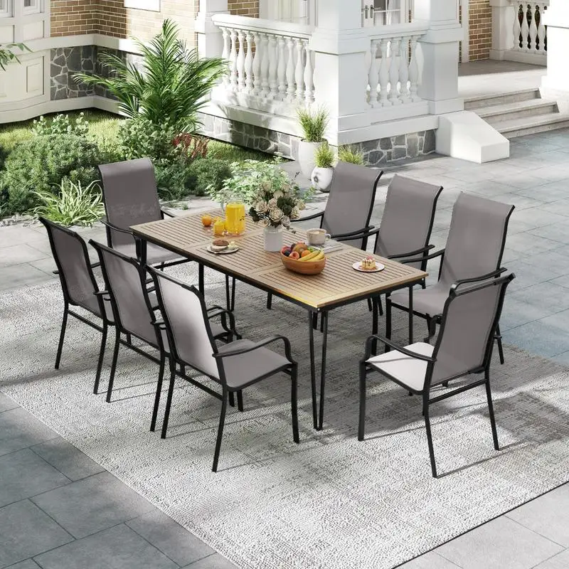Giantex Set of 2 High Back Wide Seat Dining Chairs Sturdy Metal Frame Mesh Fabric Gray