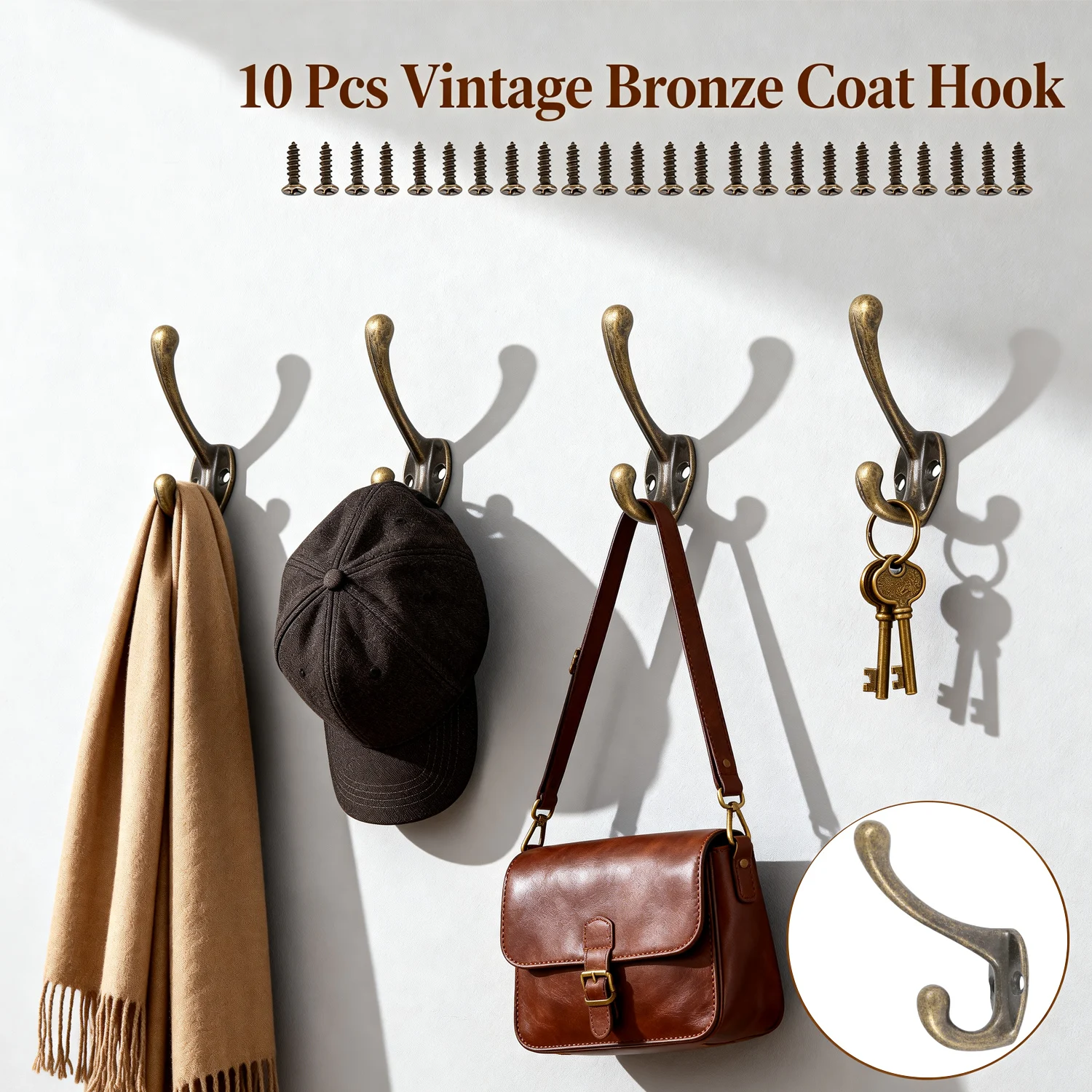 10/20 pièces Bronze patères mural porte-manteau Vintage cintre avec vis serviette pat&...