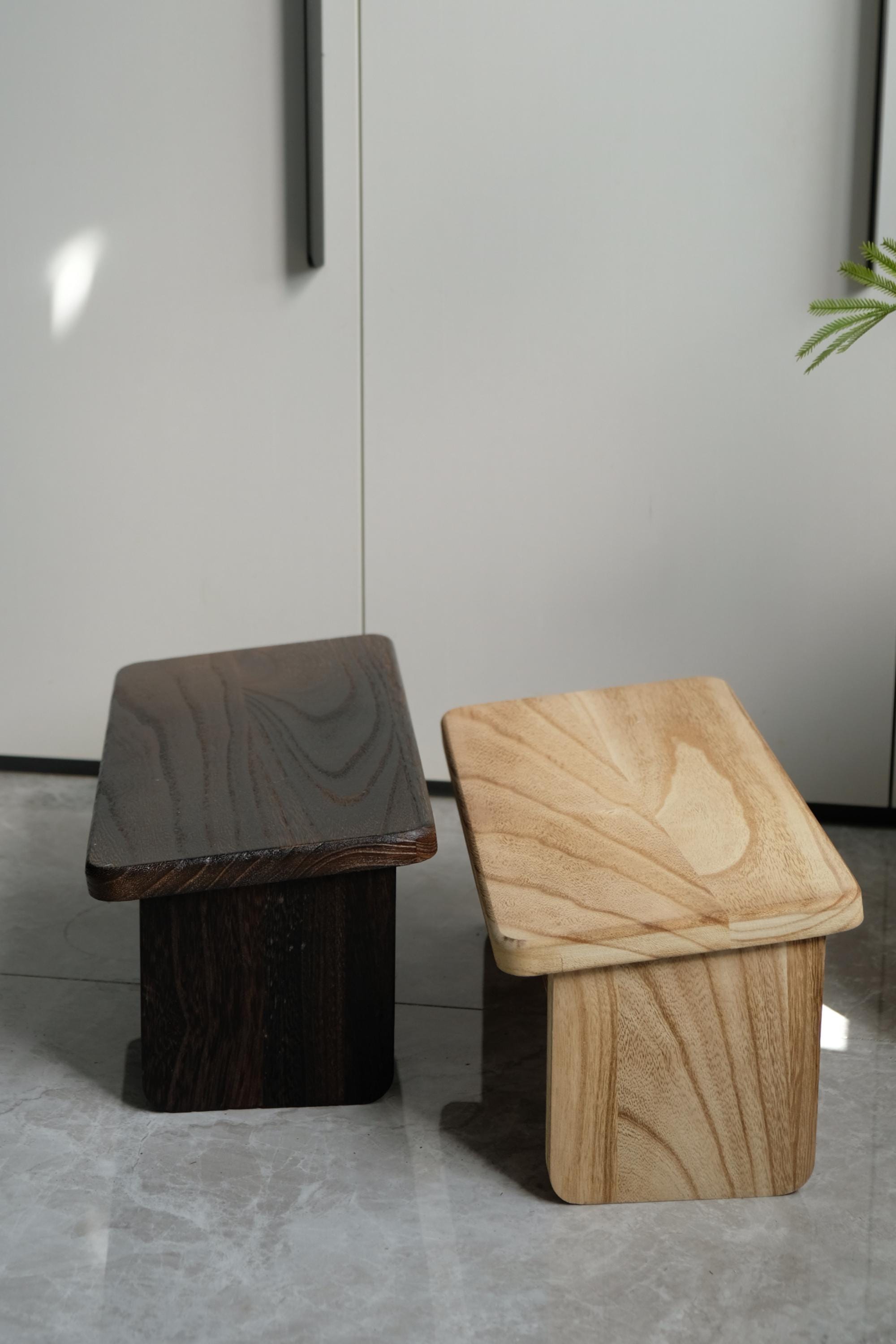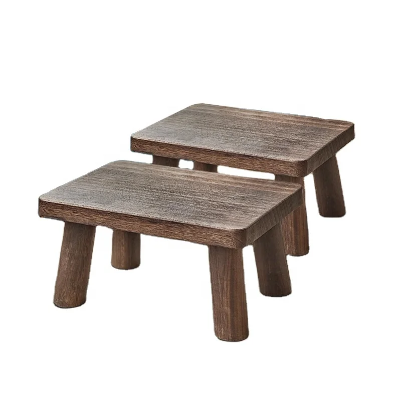 Tabouret bas simple en bois massif bois de paulownia brûl&eac...