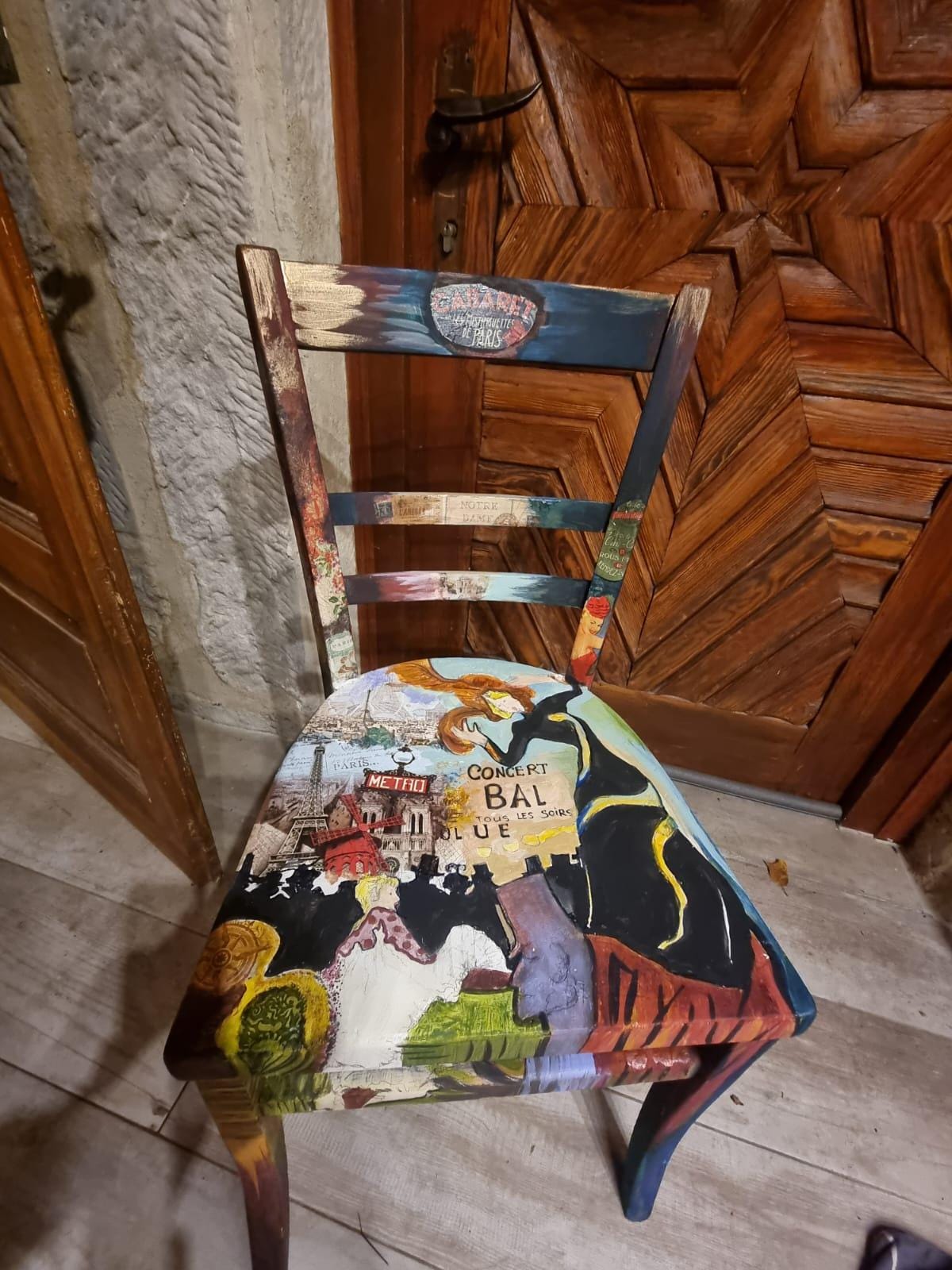 Chaise ancienne en bois peinte à la main, chaise en bois, me...