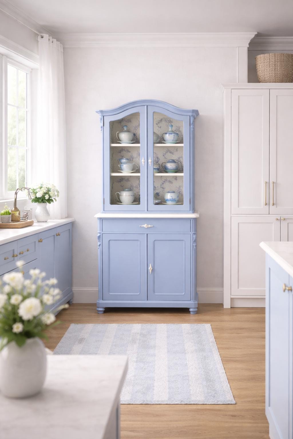 Vitrine/buffet/buffet de cuisine ancien bleu - magnifique ! Meuble ...