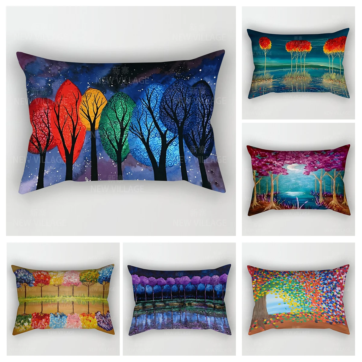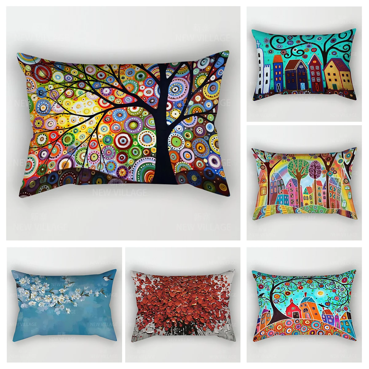 Maison automne décoration peinture à l'huile style oreiller housse de coussin dé...