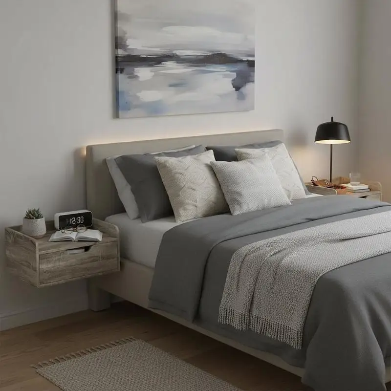 Fashionable and modern floating bedside table set - space saving de...
