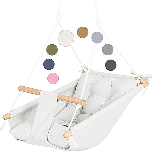 Balançoire en toile pour enfants, chaise suspendue en bois a...