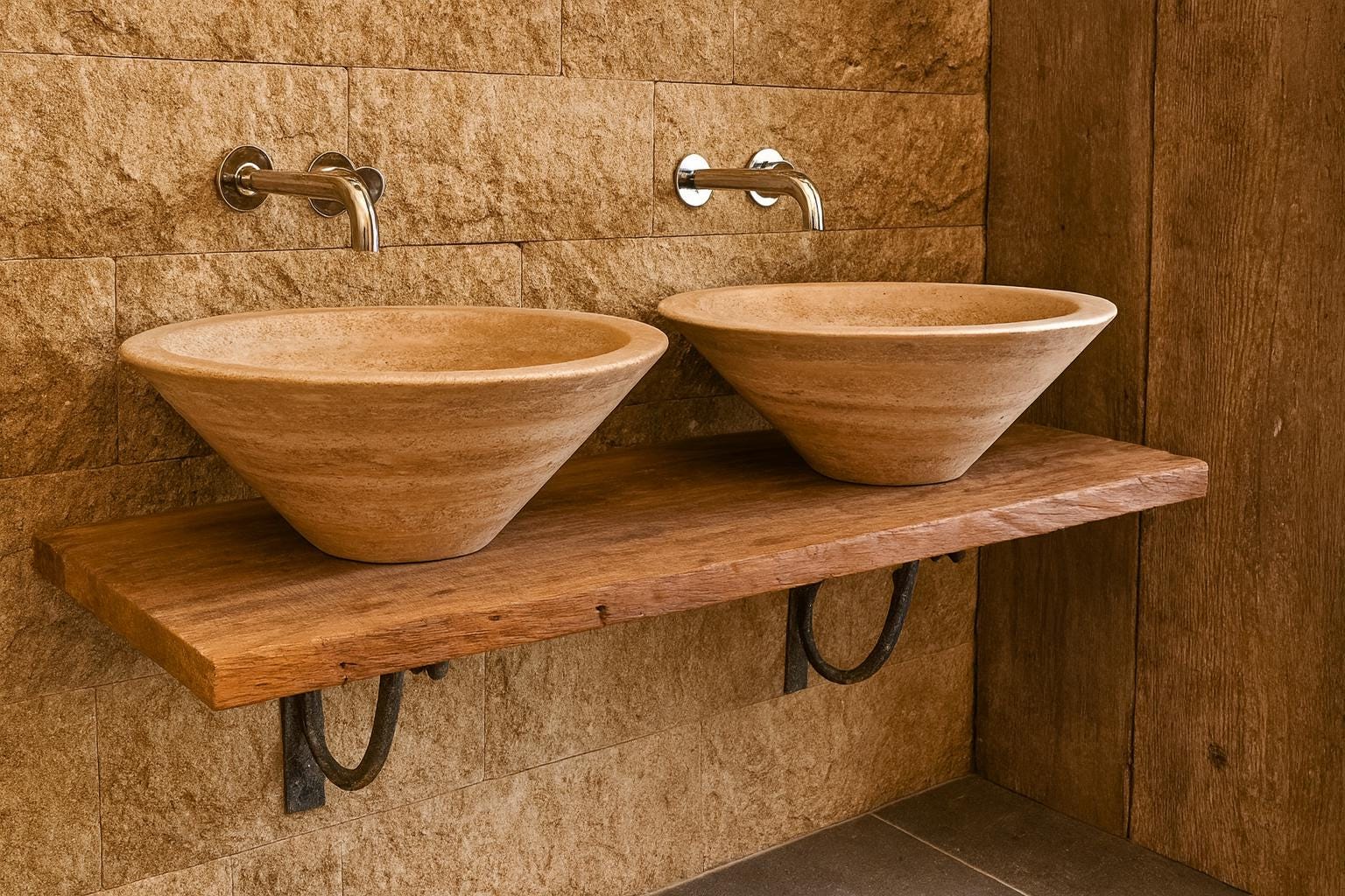 Vasques hautes en travertin - Hauteur 20 cm - Vasques rondes en tra...