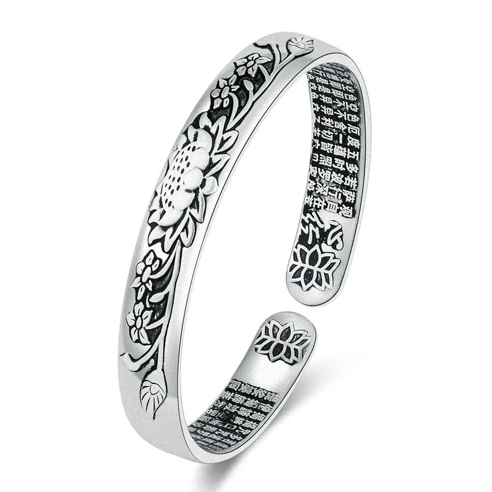 Bracelet ouvert rétro feuille de lotus noir Yaguang