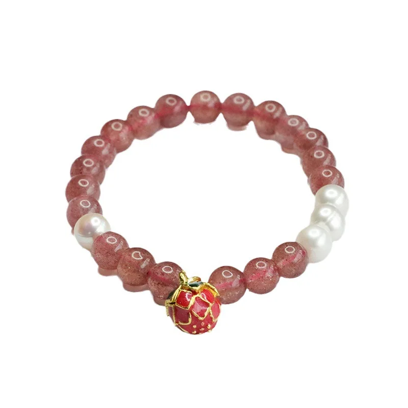 Bracelet en quartz fraise Ximang 2026 perle rouge lotus pour femme ...