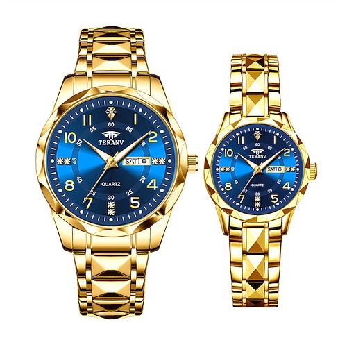 2 pièces Couples cadran coupe montre à Quartz affaires mode analogique calendrier mont...