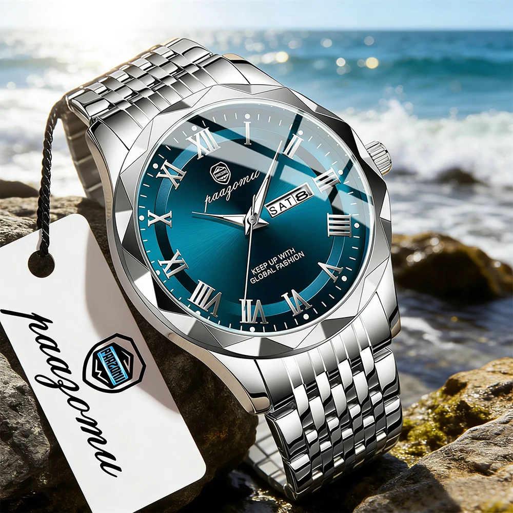 PAAZOMU Montre classique à quartz pour homme, chronométrage précis, étan...