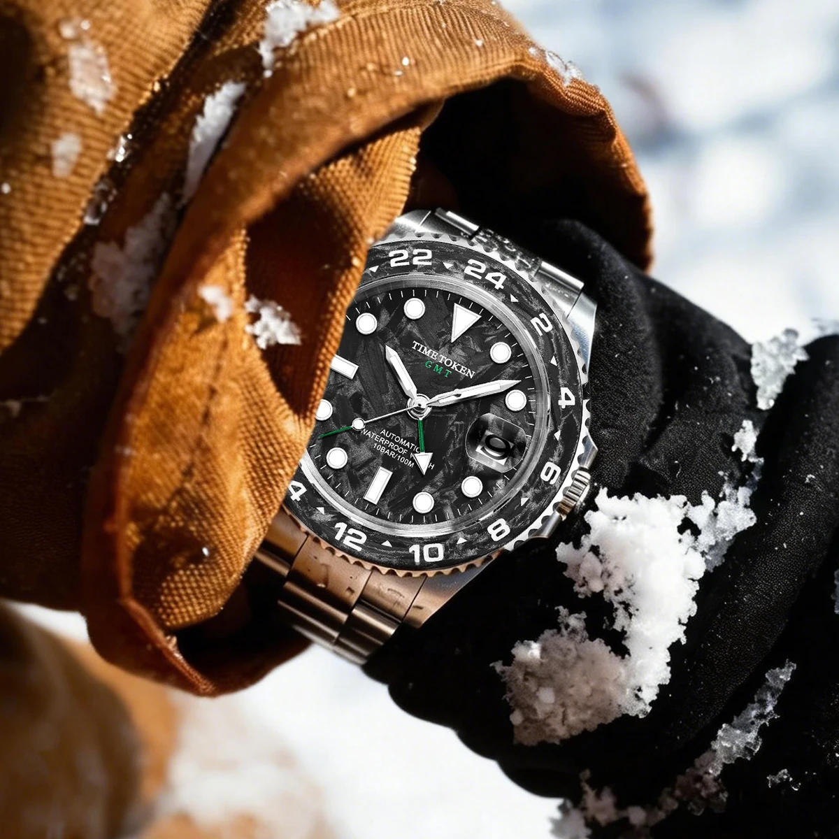 Montre homme 41 mm GMT, montre homme haut de gamme, montre automatique mécanique en fibre de ...