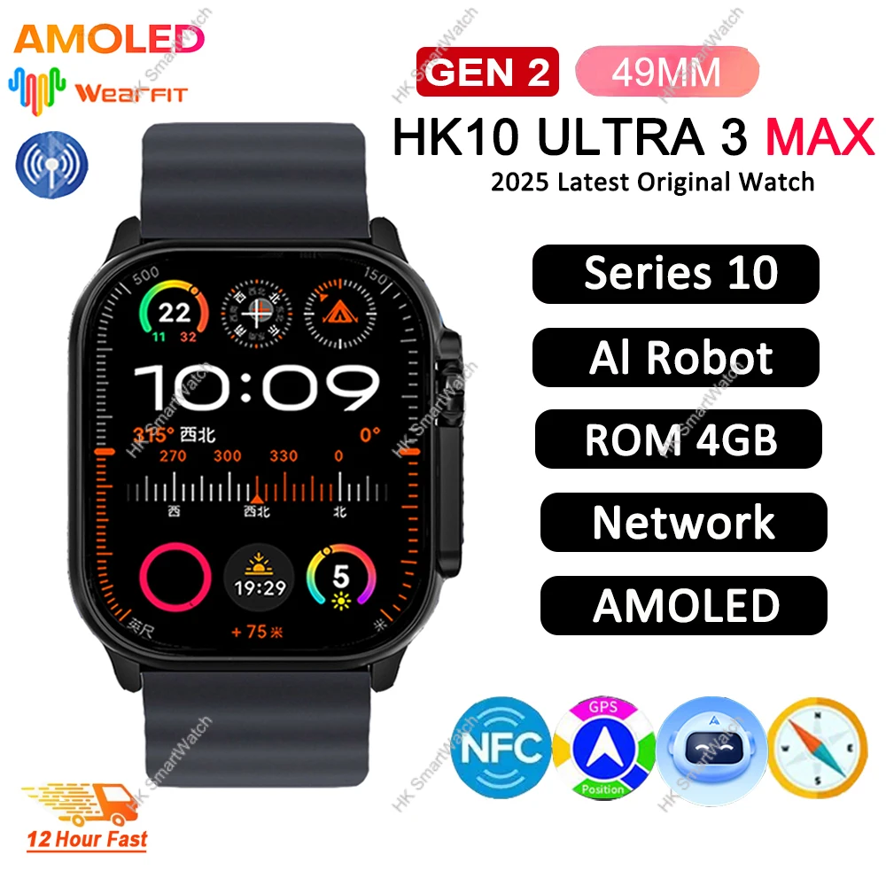 Montre connectée HK10 ULTRA 3 MAX Gen2 AMOLED 4 Go ROM IA ROBOT Partage de réseau 49 m...