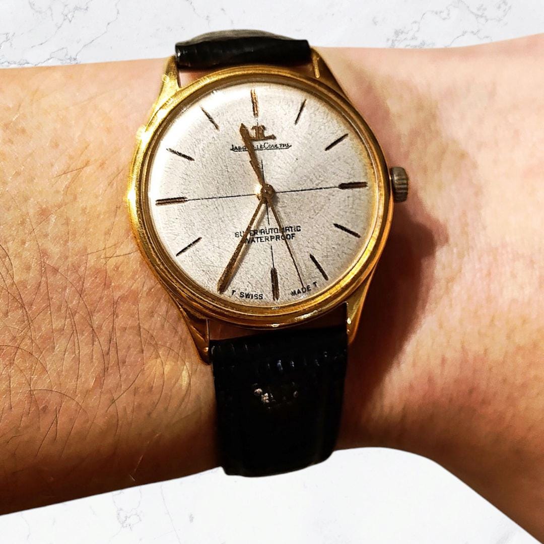 Il s'agit d'une rare montre-bracelet vintage Jaeger-LeCoultre, en or massif 18 carats, animée...