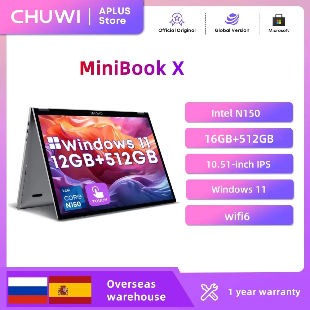 Ordinateur portable 2-en-1 CHUWI MiniBook X, processeur Intel N150 ...