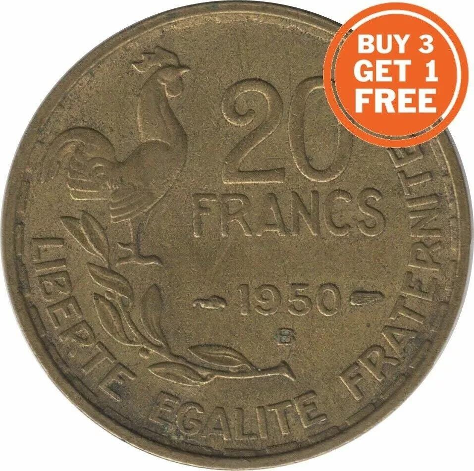 20 francs de 1950 à 1954 année au choix avec des marques d'établissement diffus...