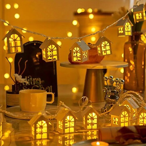 Guirlandes lumineuses féeriques en bois 1,5m 10LEDs aliment&...