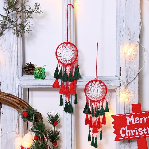 Noël capteur de rêves plume crochet fleur noël vert...