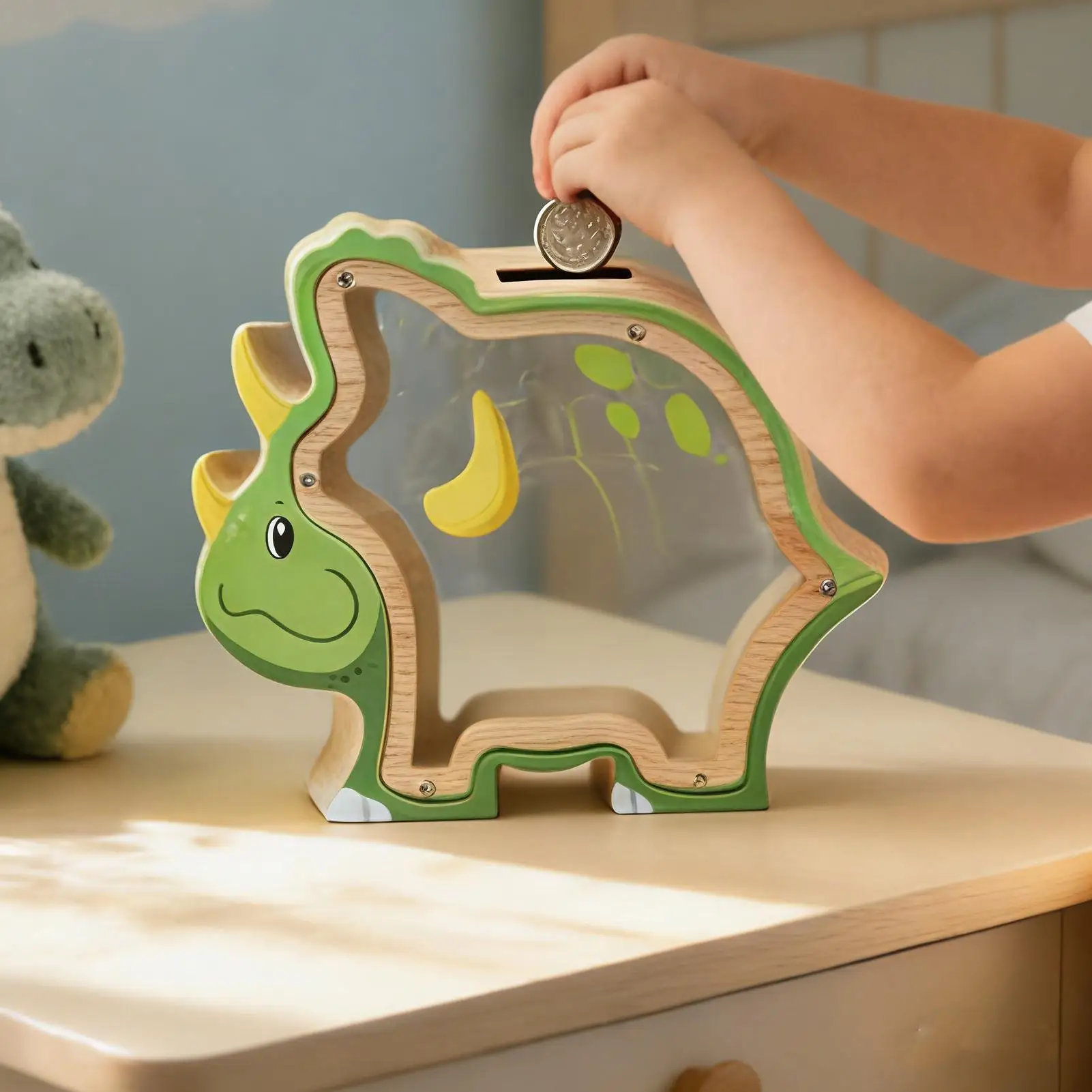 Tirelire dinosaure en bois, coffre-fort dinosaure, boîte à monnaie, tirelire pour pi&eg...