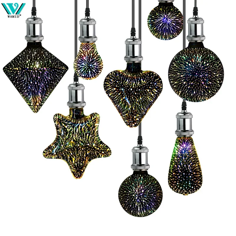 Ampoule LED 3D en Forme de Cœur Diamant, Décoration de Vacances, Lampe de Noël, No...