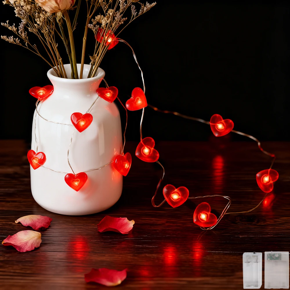 Guirlande lumineuse rouge en forme de cœur, 20/30 LED, pour la saint-valentin, noël, f&ec...