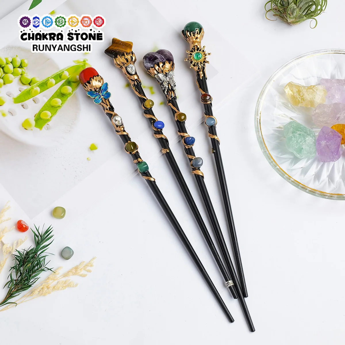 Boule de cristal papillon en cristal naturel, 1 pièce, cœur, étoile, sceptre, ba...