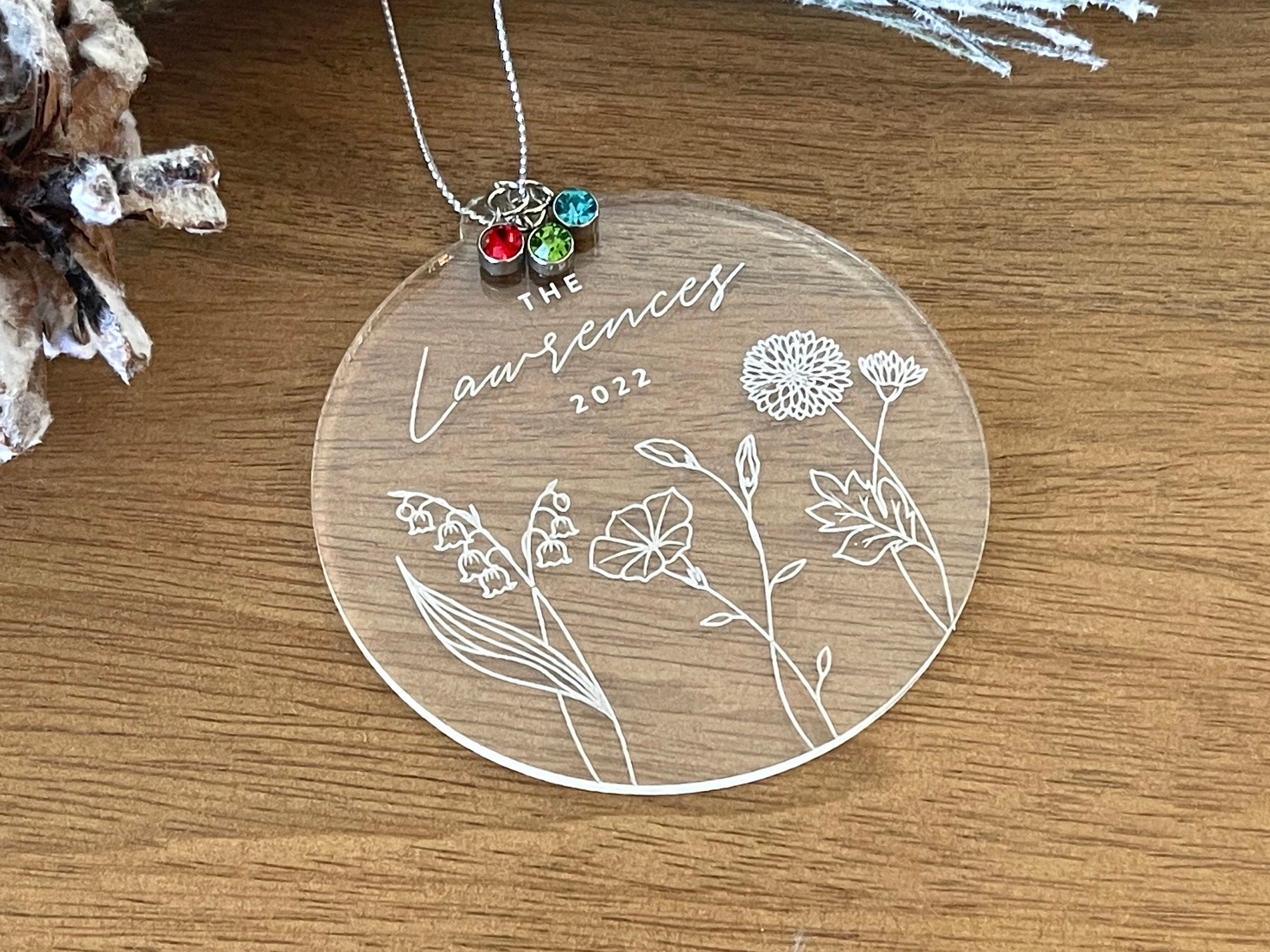 "Décoration de Noël fleur familiale gravée sur acrylique transparent Cadeau ...
