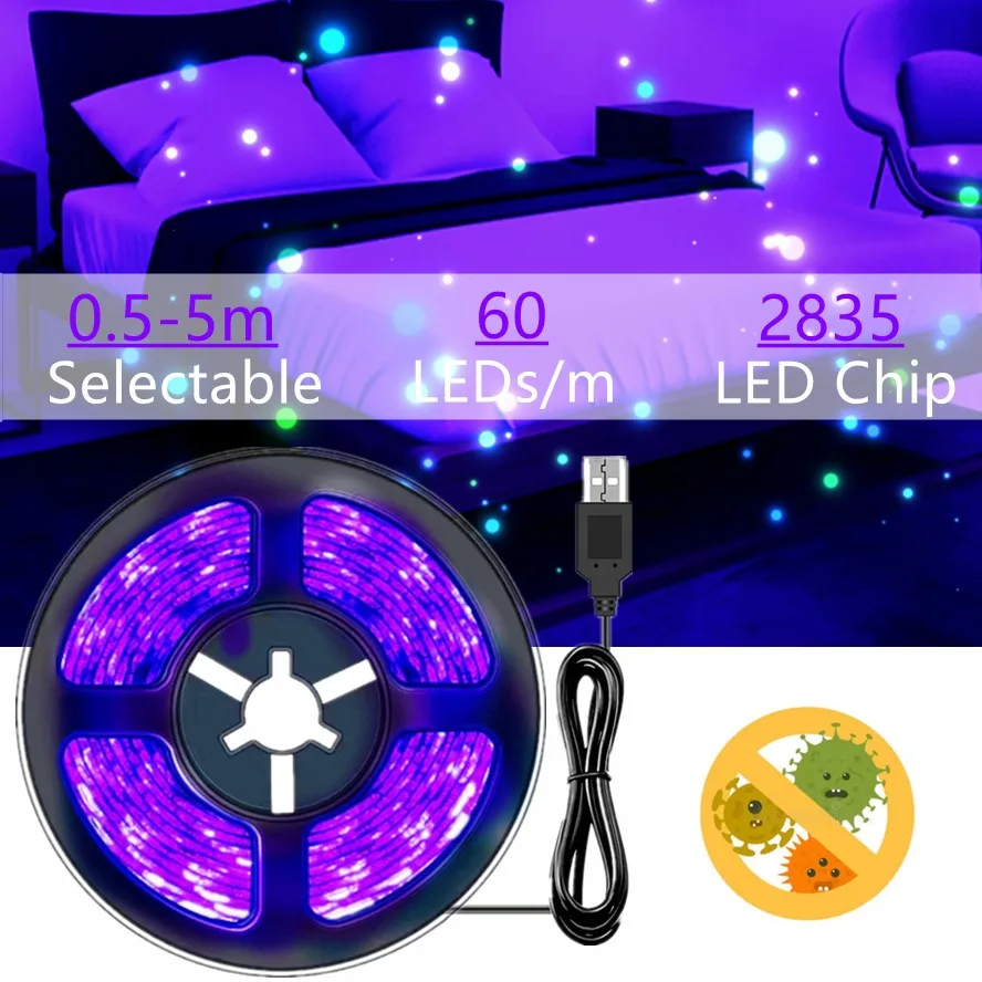 Bande lumineuse LED UV 5V, Flexible, 2835 SMD, USB, violet, ultravi...