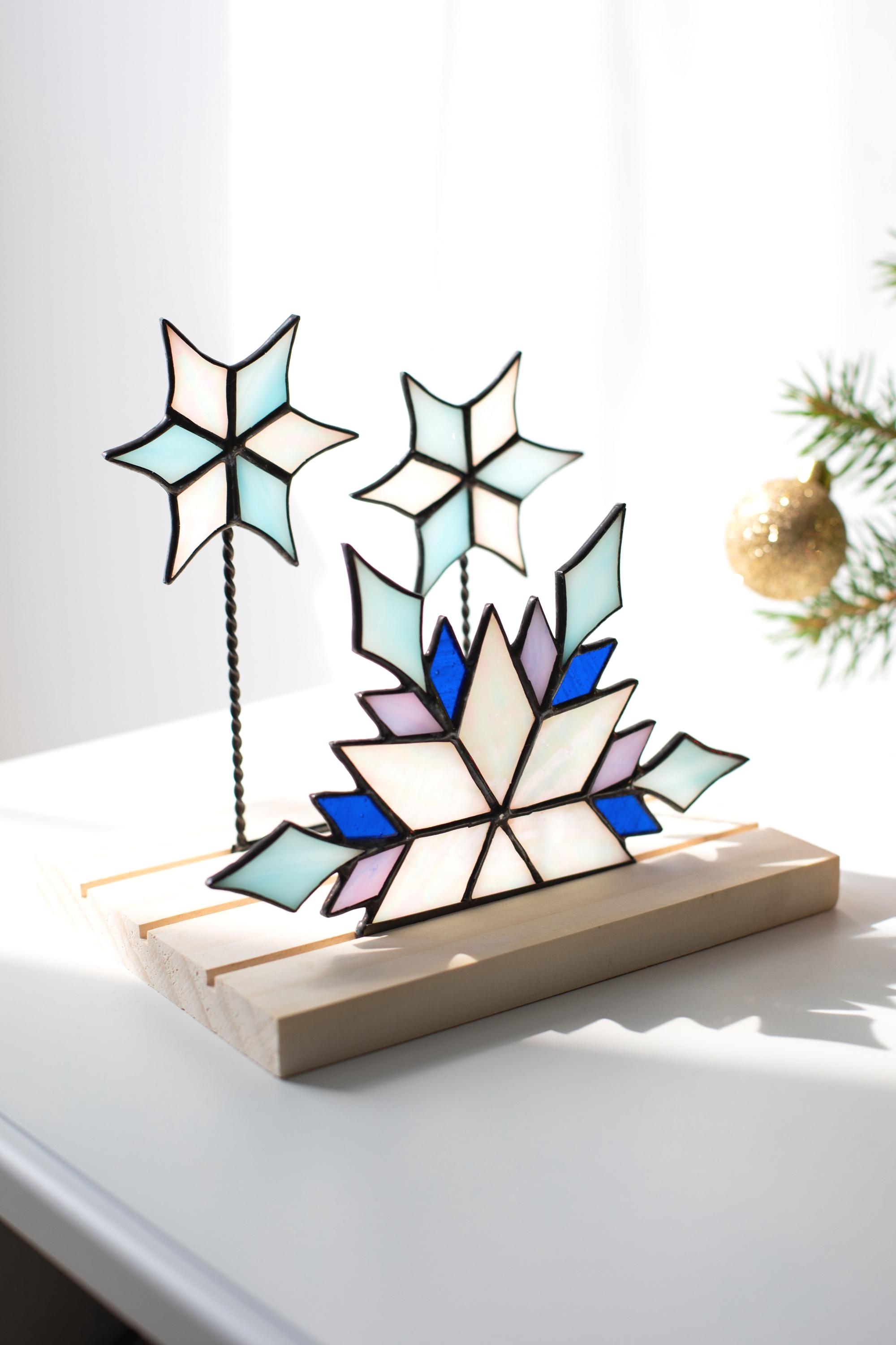 Cadeau de Noël unique, sapin de Noël en vitrail fait main, décorations de Noël...