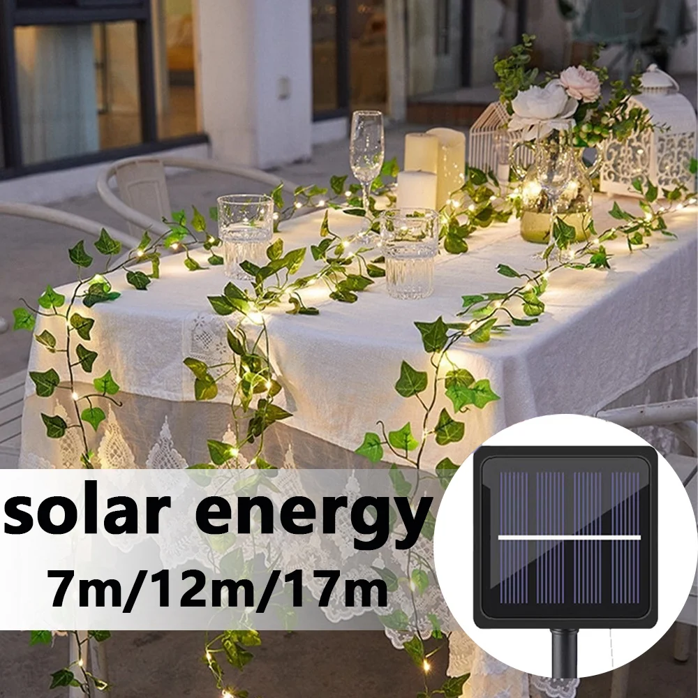 Guirlande lumineuse solaire extérieure 7M/12M/17M, guirlande de fleurs artificielles en lierr...