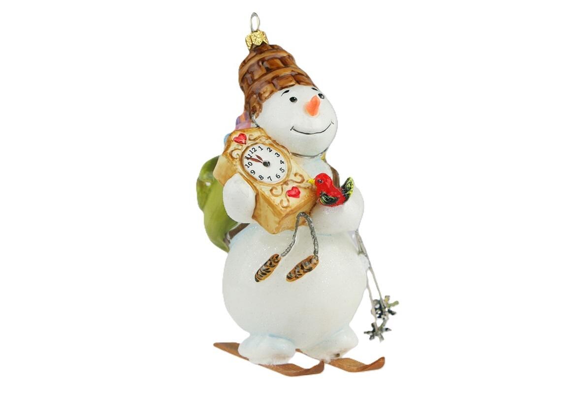 Décoration de Noël en verre - Bonhomme de neige avec un...