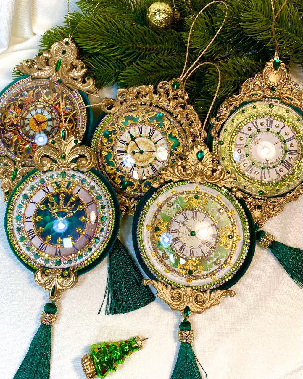 L'unique décoration de Noël vert émeraude avec cadran antique est recouverte de v...