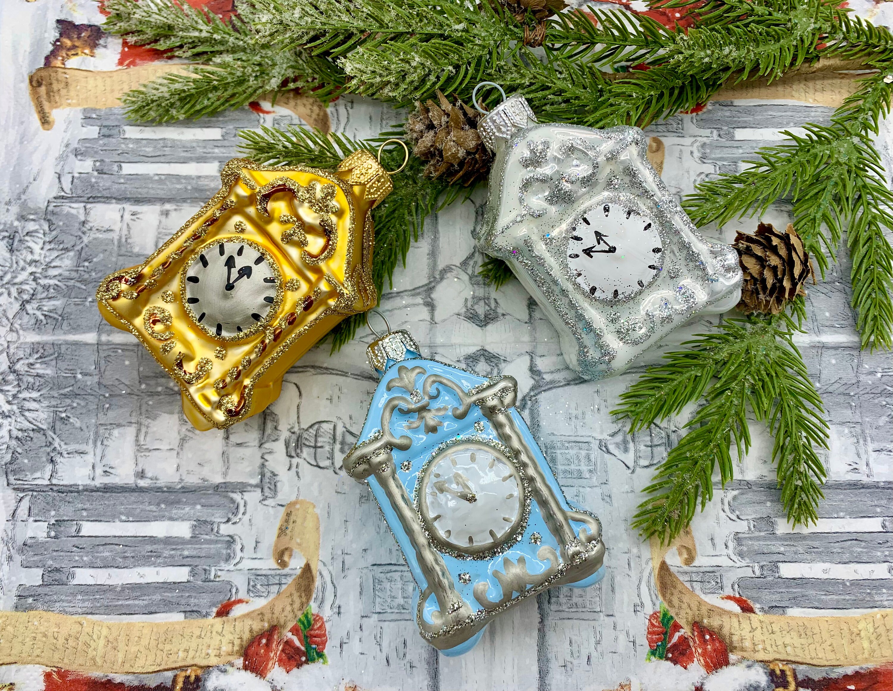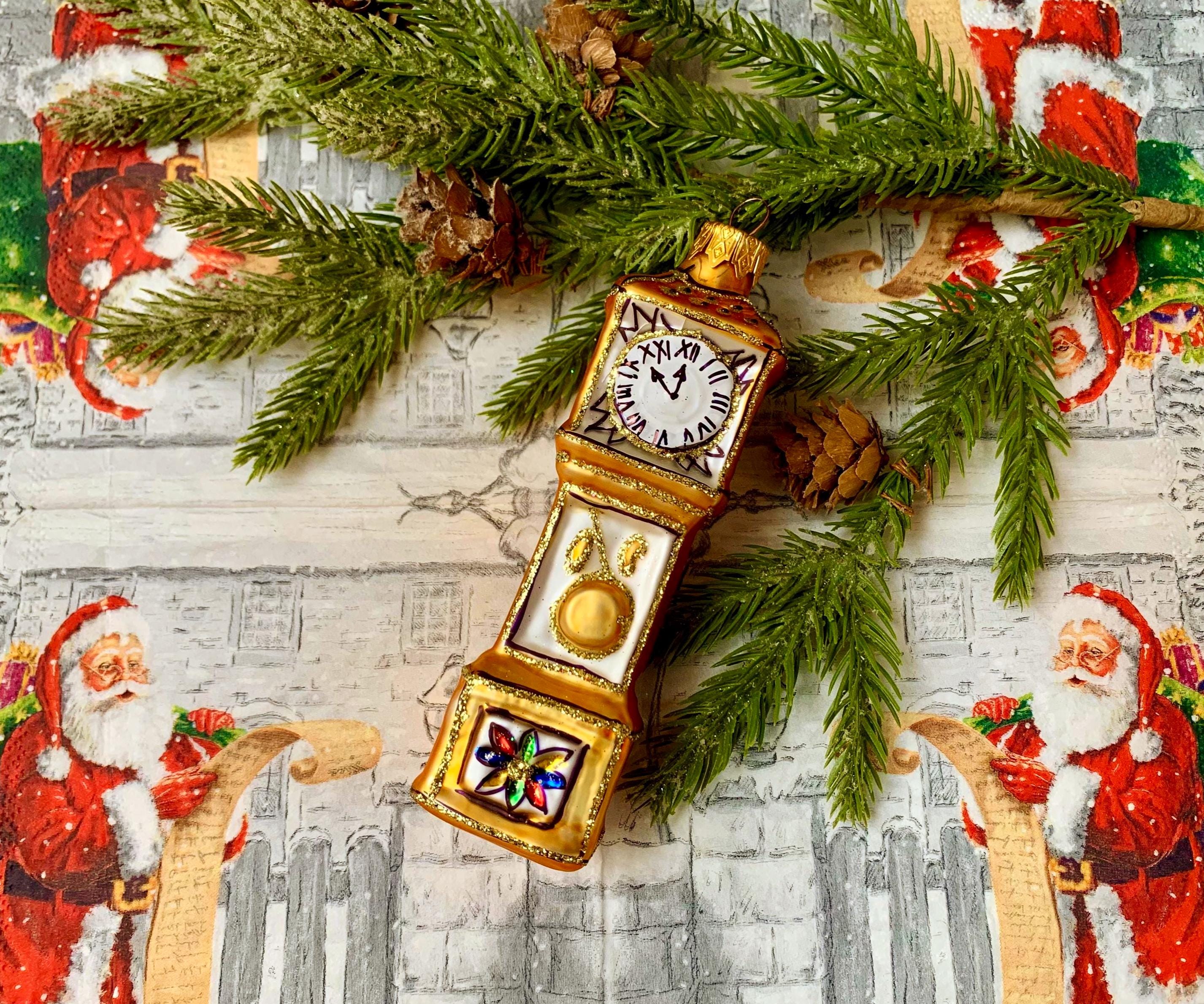 Ensemble d'horloges ornement de Noël en verre, figurine de Noël vintage, décoration...