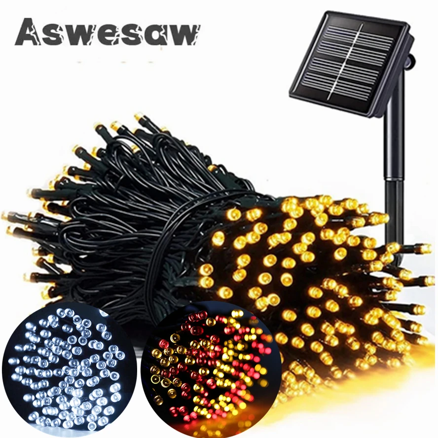 Guirlande solaire LED 32M 22M 12M, plusieurs Modes, panneaux solaires, lumières extéri...
