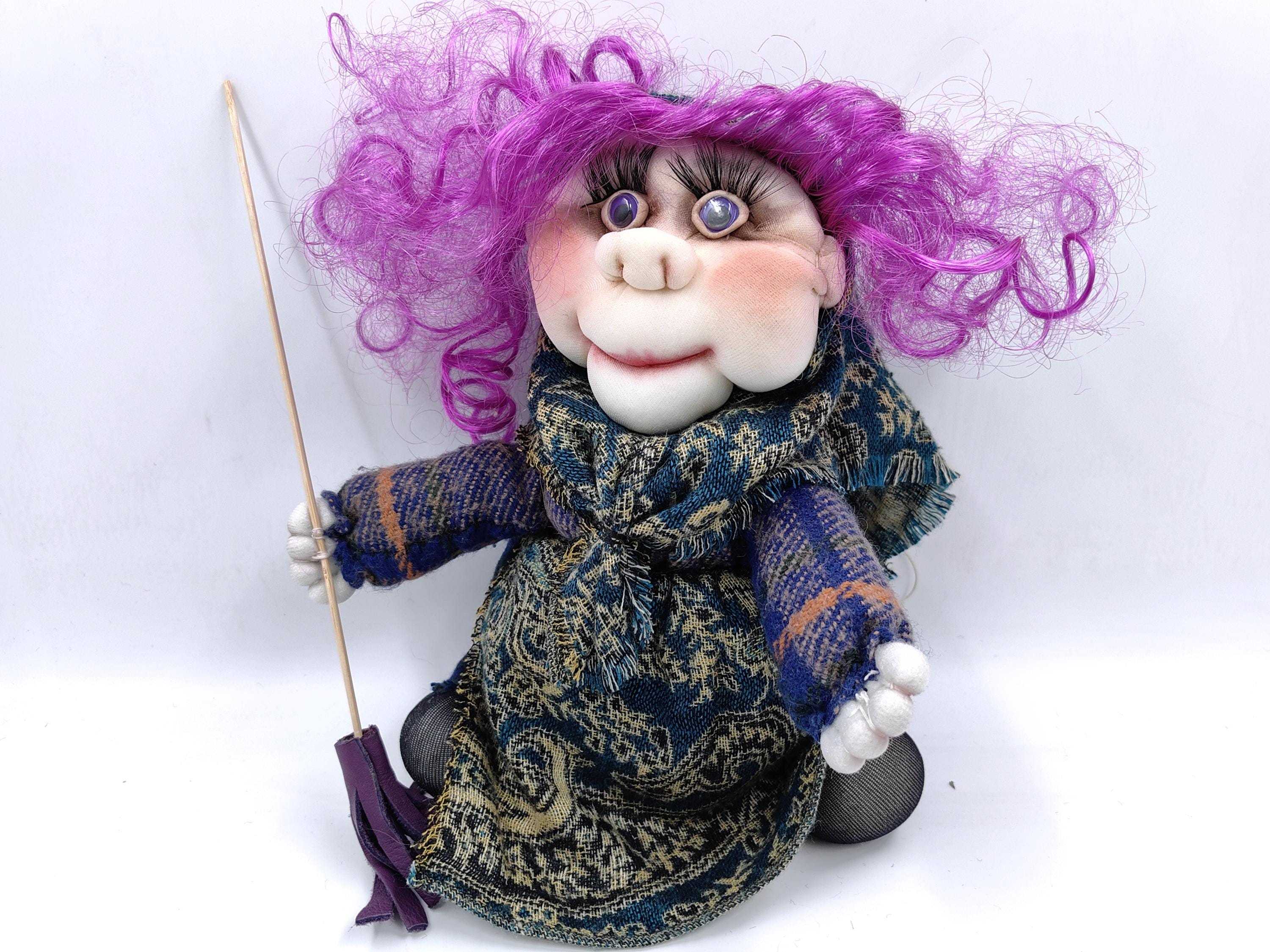 Belle poupée sorcière porte-bonheur OOAK avec balai - grande poupée Baba Yaga f...