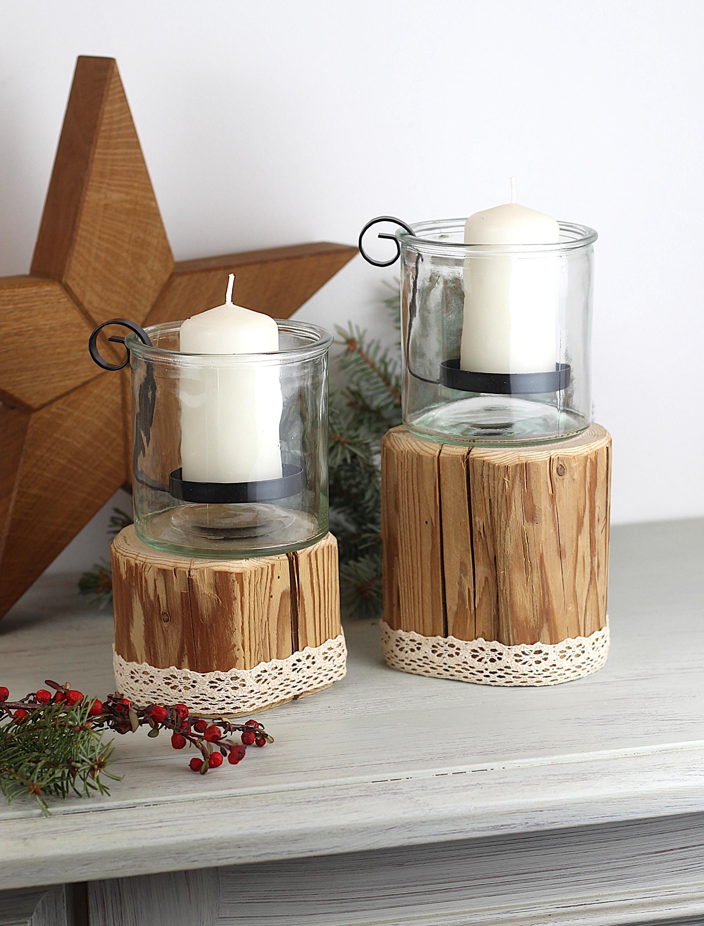 Lanterne artisanale fabriquée à partir de poutres en bois de récupératio...