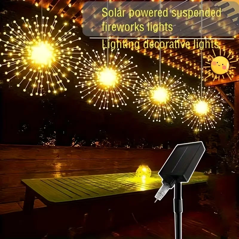 Guirlandes lumineuses solaires LED en forme d'étoile, lumières de feux d'artifice d'ex...