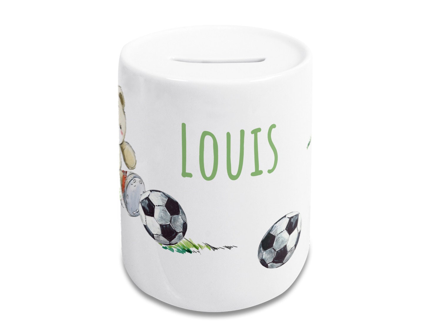 Tirelire personnalisée ours de football - avec nom - cadeau adorable pour les garçons ...