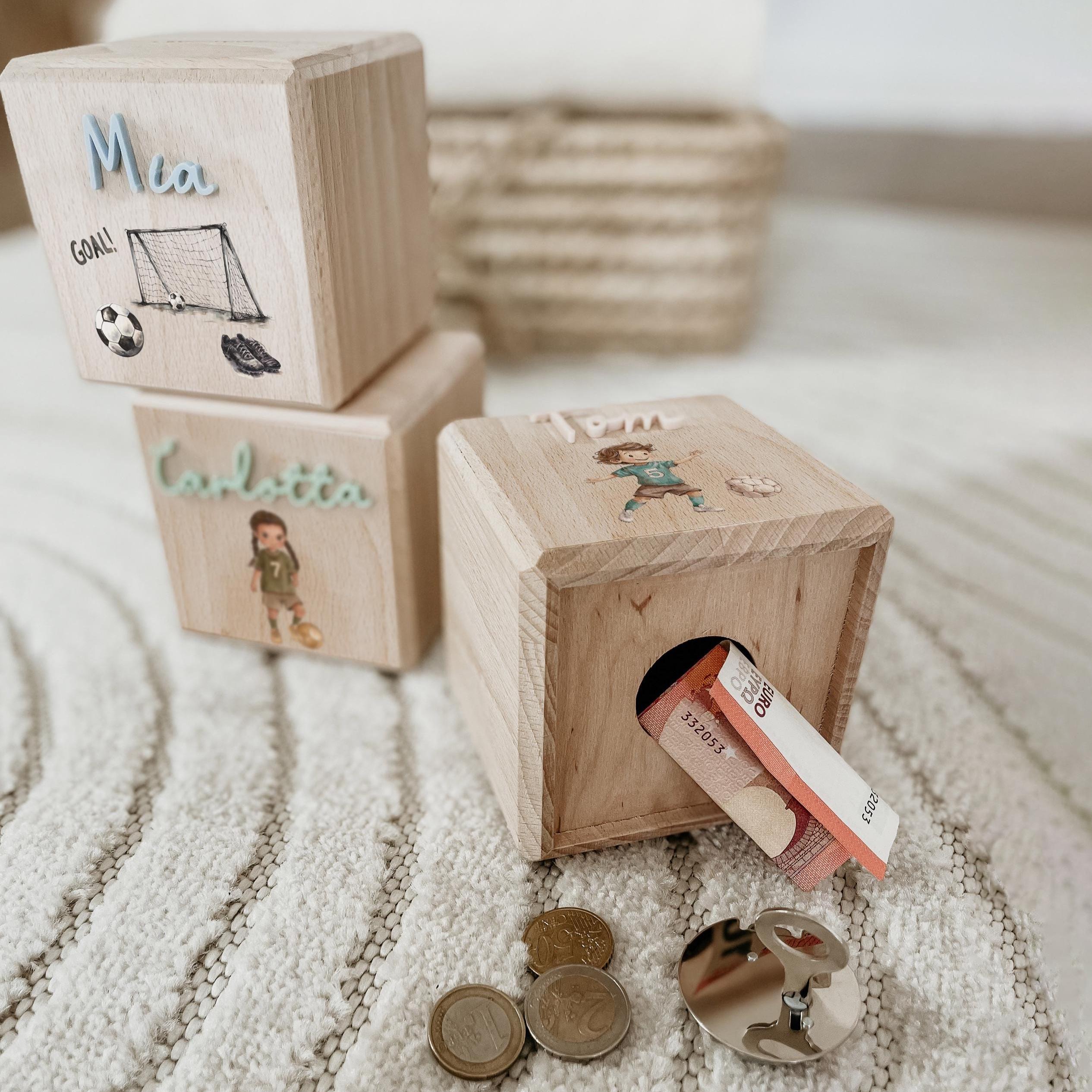 Tirelire en bois personnalisée, motif football, tirelire per...