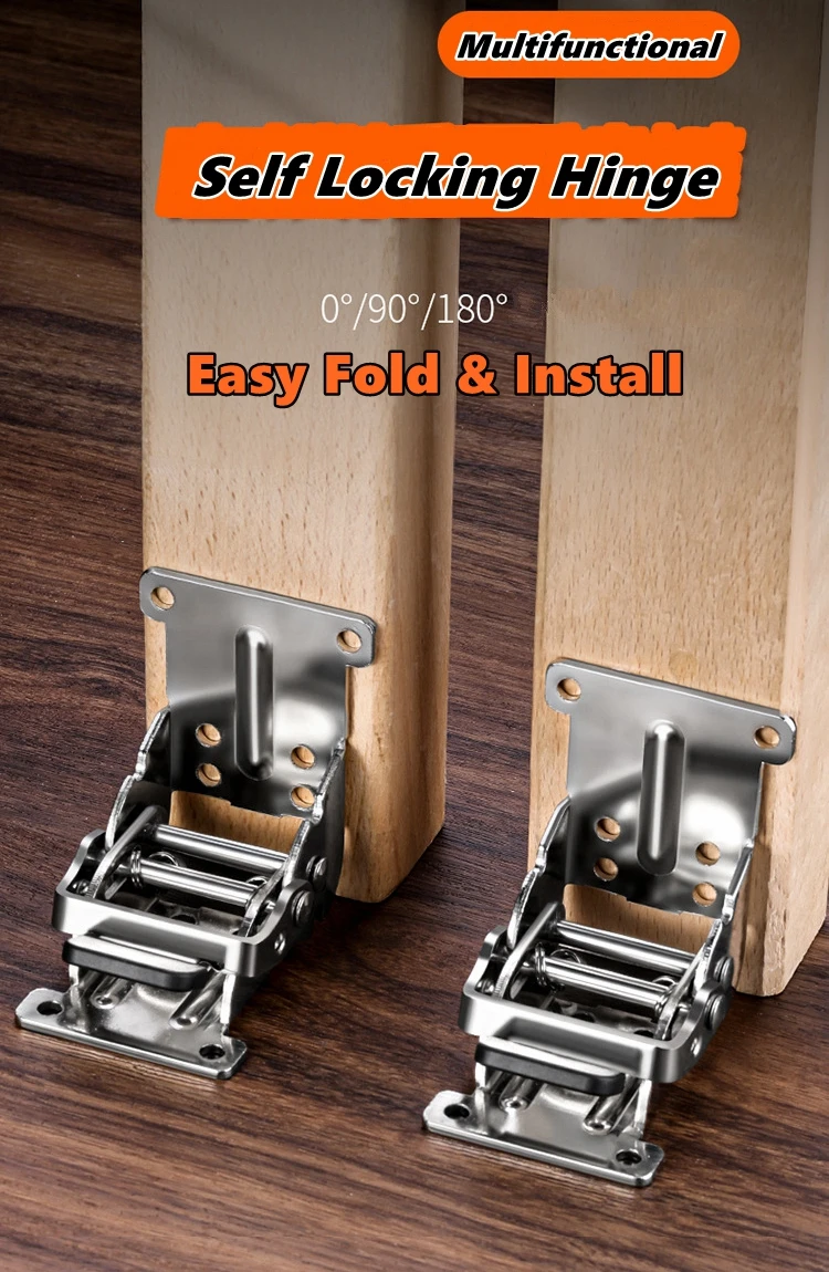 Charnière pliable autobloquante 0-180 degrés avec vis de montage, supports d'extension...