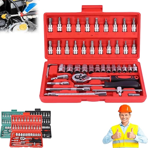 Kit d'outils avec clé à cliquet, jeu de douilles en acier CR40 1/4 po et 1/2 po, coffr...