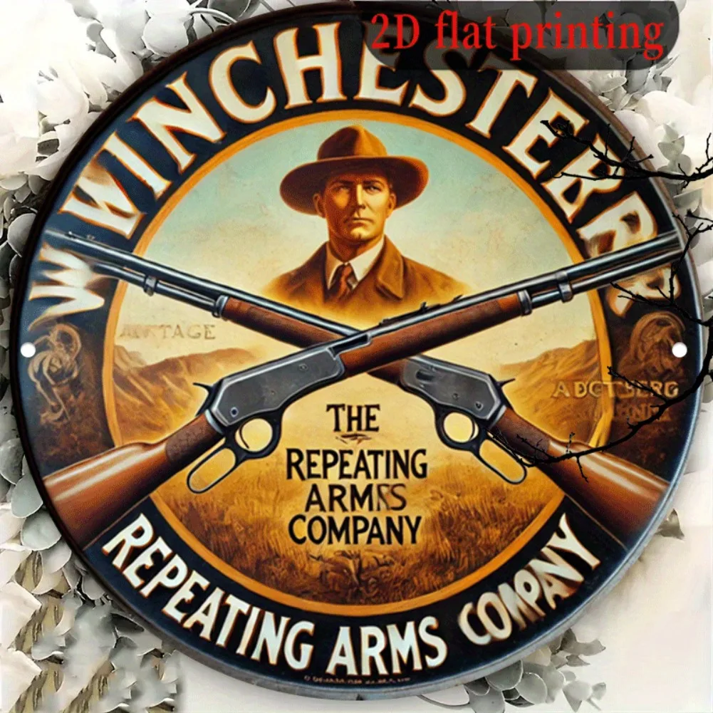 Panneau rond plat en aluminium 2D 8x8 pouces, Plaque Vintage des bras répétitifs Winch...