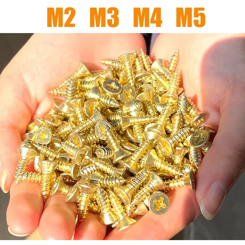Vis autotaraudeuses plate Phillips à tête fraisée en laiton, filetage mét...