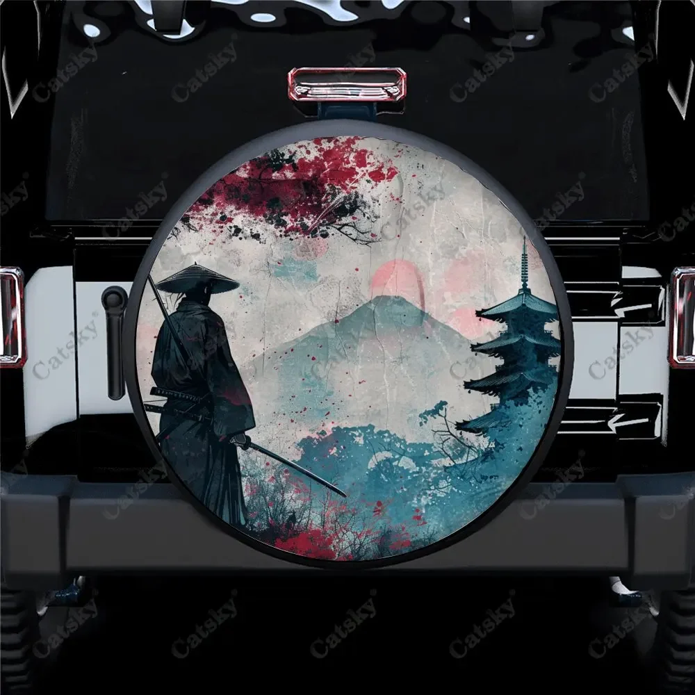 Couverture universelle de pneu de secours de voiture, paysage japonais samouraï, accessoires au...
