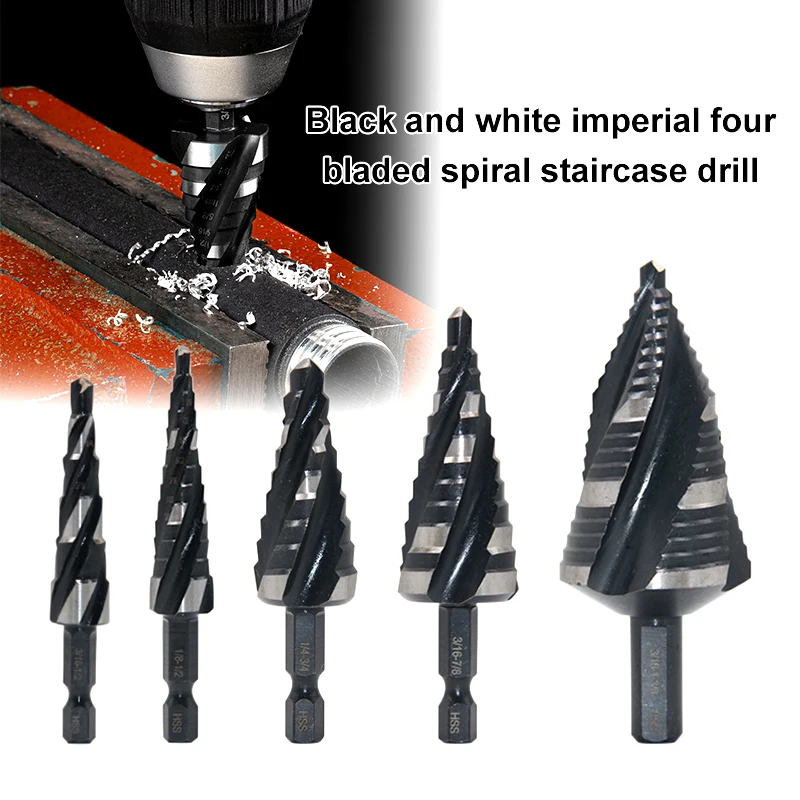Jeu de forets à spirale à quatre lames HSS 4241 noir et blanc pour escaliers, outil d'...