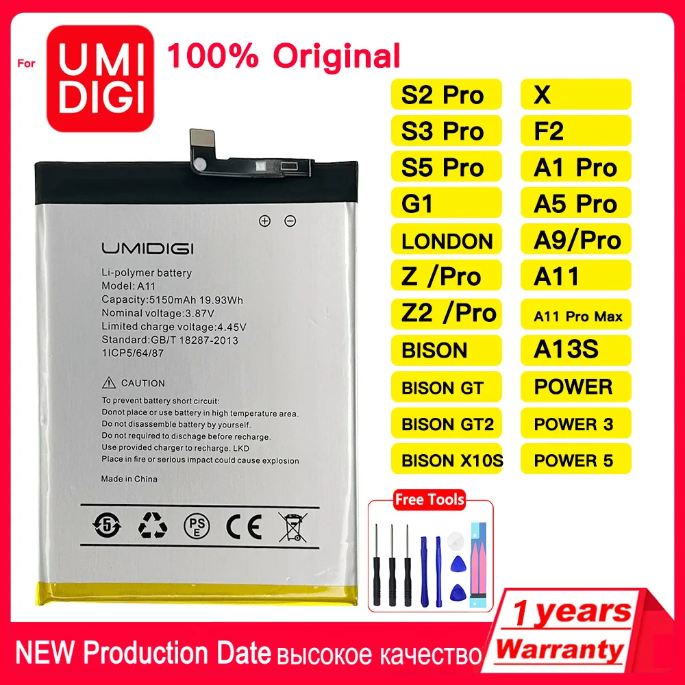 Batterie Rechargeable d'origine pour UMI Umidigi X F2 A1 A3 A5 A7 A7S A9 A11 Bison GT S2 S3 S5 Z Z Z...