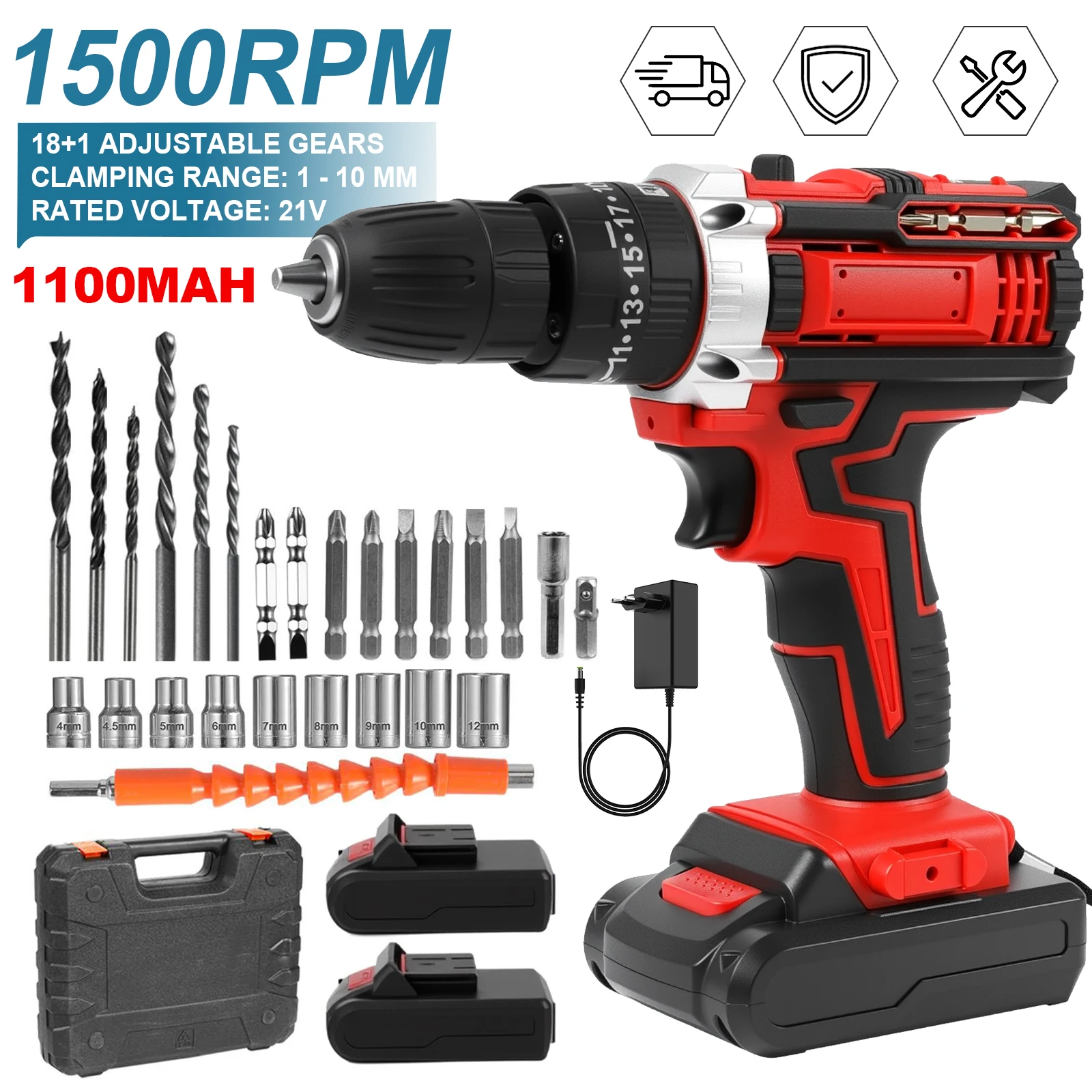 Perceuse sans fil 21V, tournevis électrique, perceuse à percussion électrique, ...