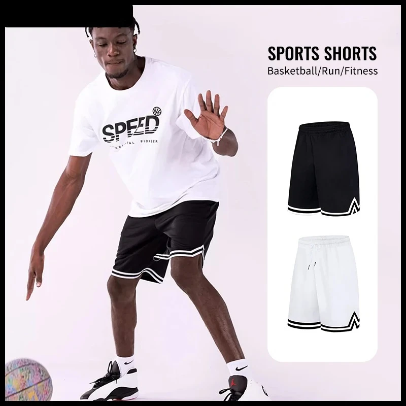 Shorts de basketball mi-cuisse pour homme, rayés, amples, respirants, en maille, à s&e...