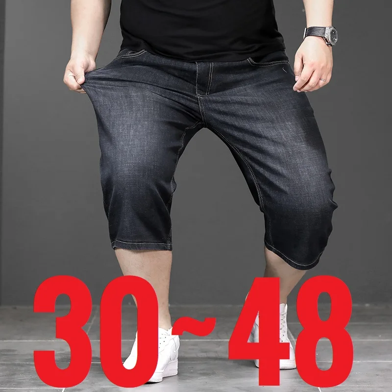 Nouveau grande taille longue longueur hommes Shorts ample Stretch Jean Bermuda mâle mince 3/4 ...