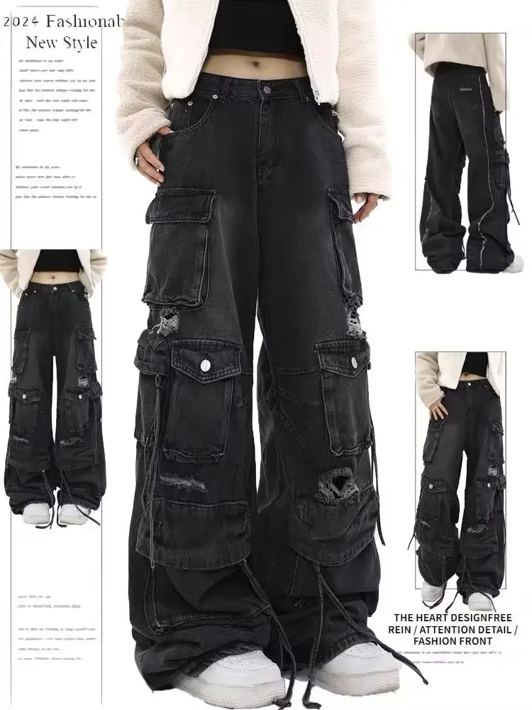Femmes Y2k américain rétro poches multiples Cargo Jea...