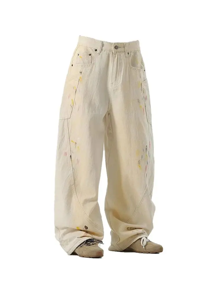 Jean droit hommes blanc ample unisexe Denim pantalon tendance jean neutre hommes Baggy décont...