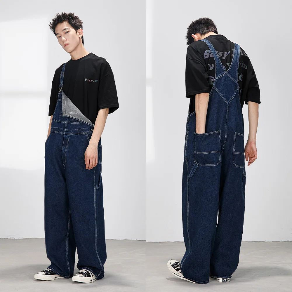 Salopette droite en denim pour hommes et femmes, jeans cargo, combinaison pleine longueur, mode japo...